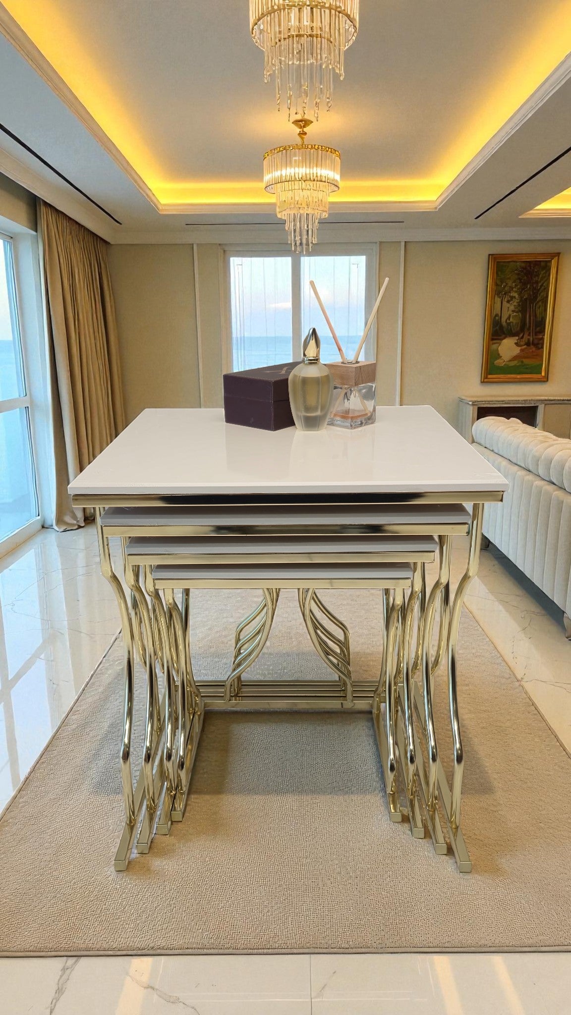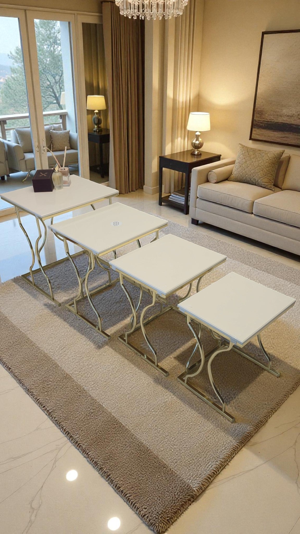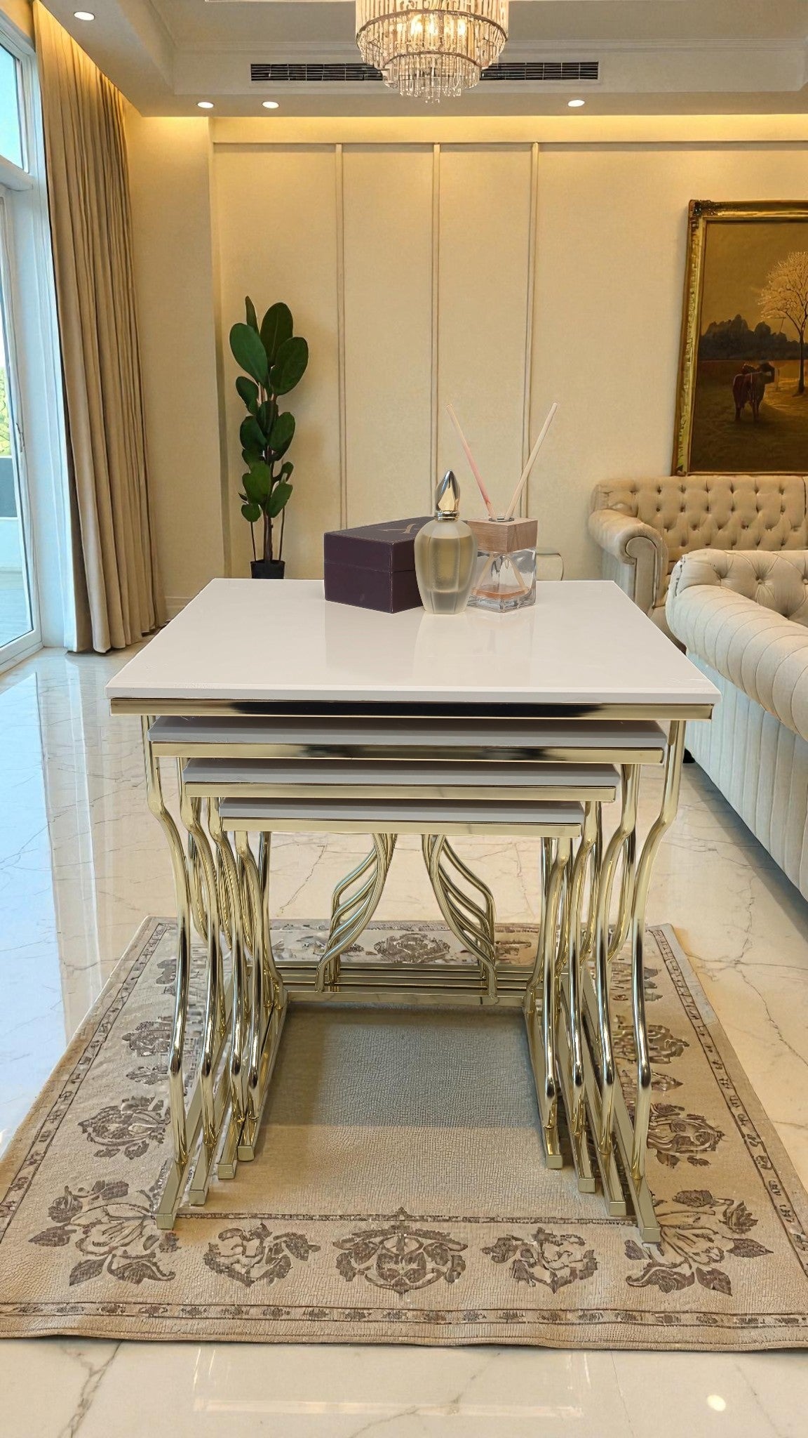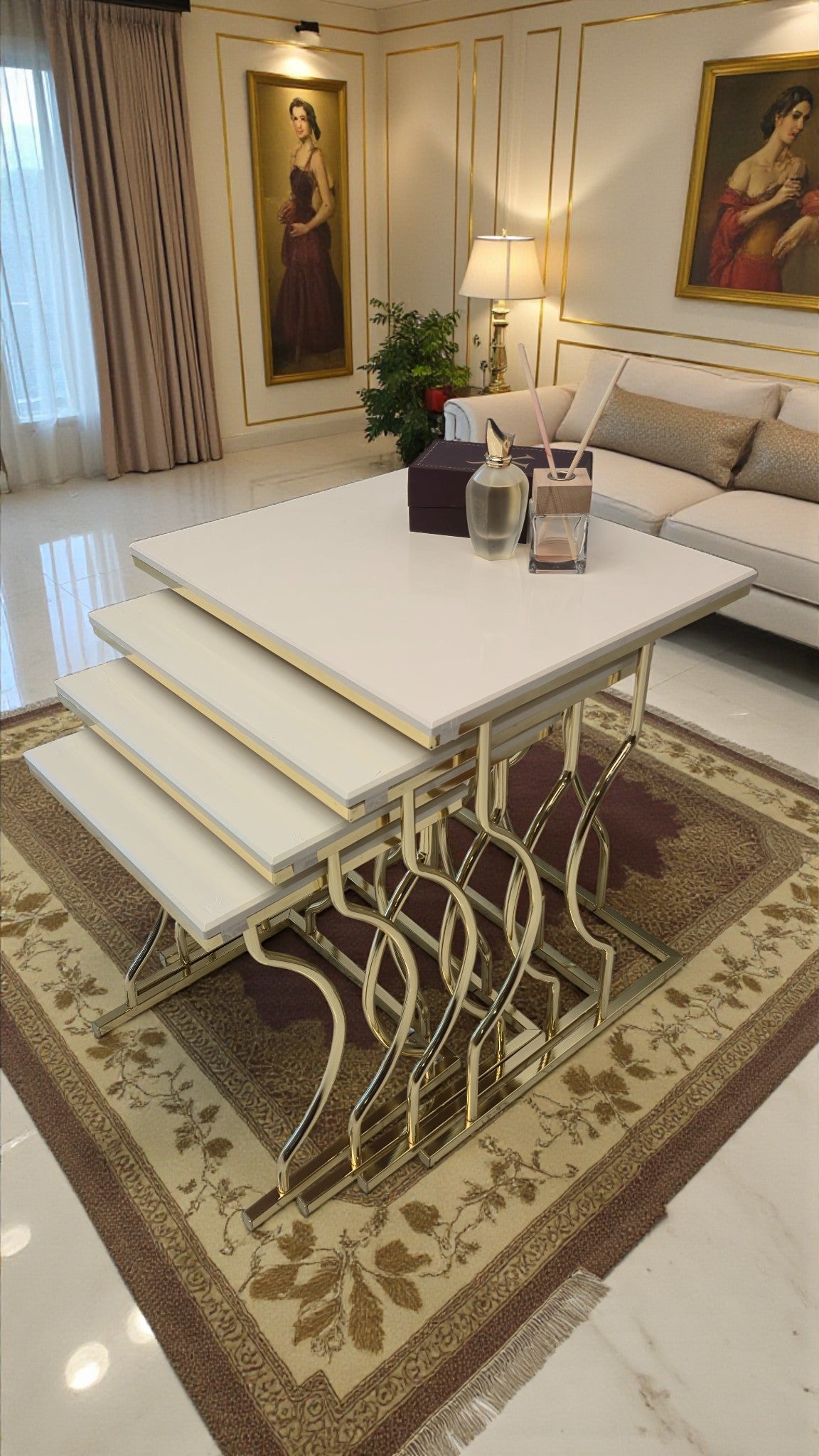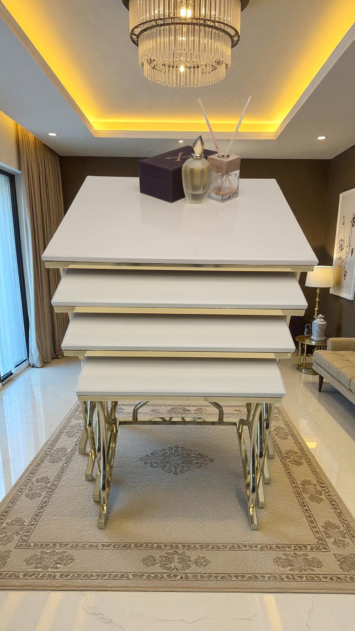 Arden Elite 4’lü Kare Zigon Sehpa Seti zarafet ve lüks tasarımı bir araya getirir ve evinize şıklık katar
