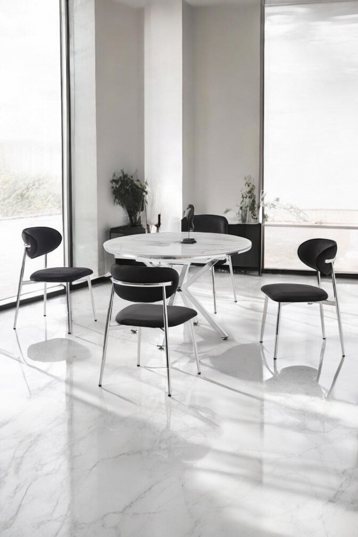 Arhor Serisi 120x120 Açılabilir Lak Panel Beyaz Mermer Desen Masa Takımı Krem Sandalye