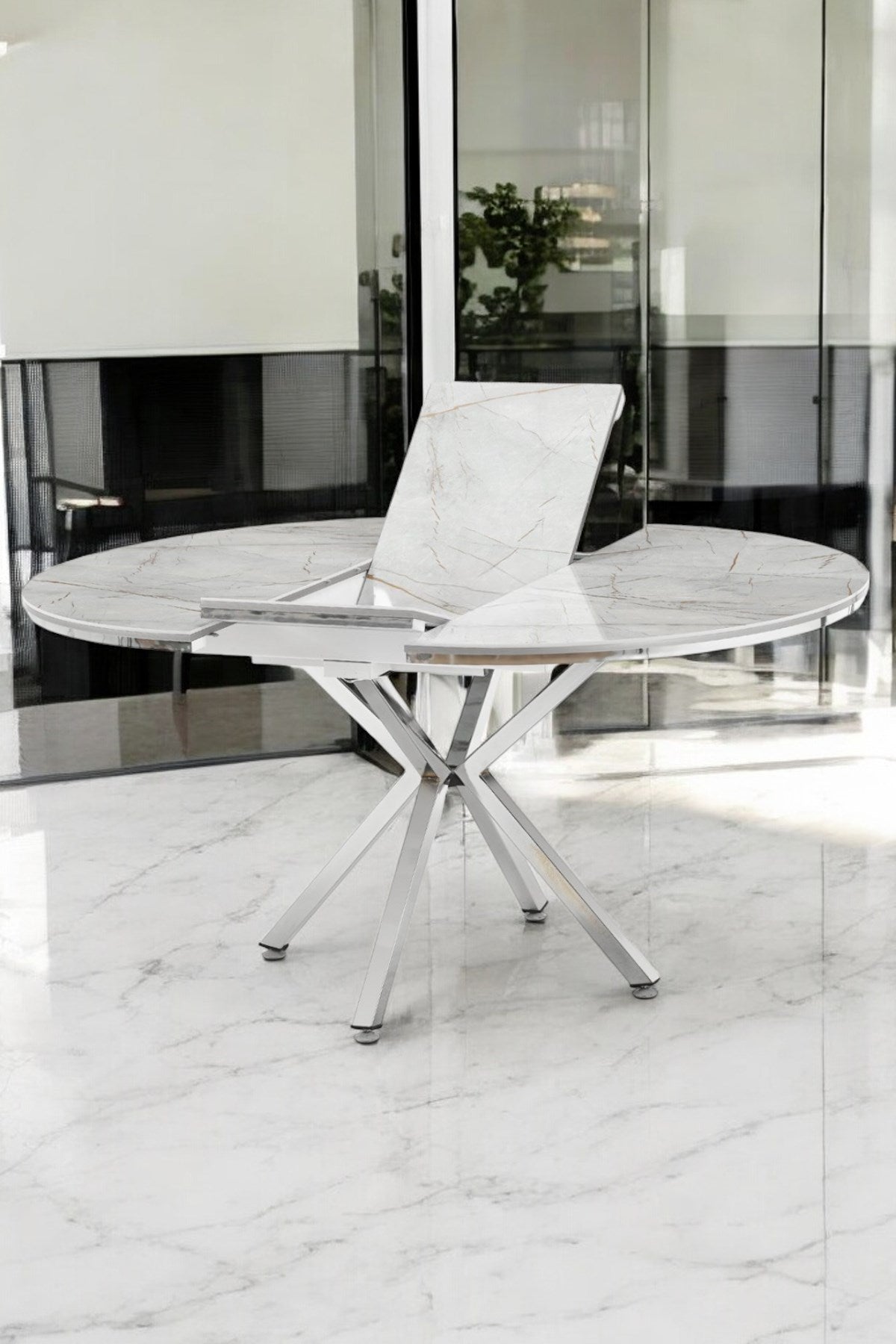 Arhor Serisi 120x120 Açılabilir Lak Panel Beyaz Mermer Desen Masa