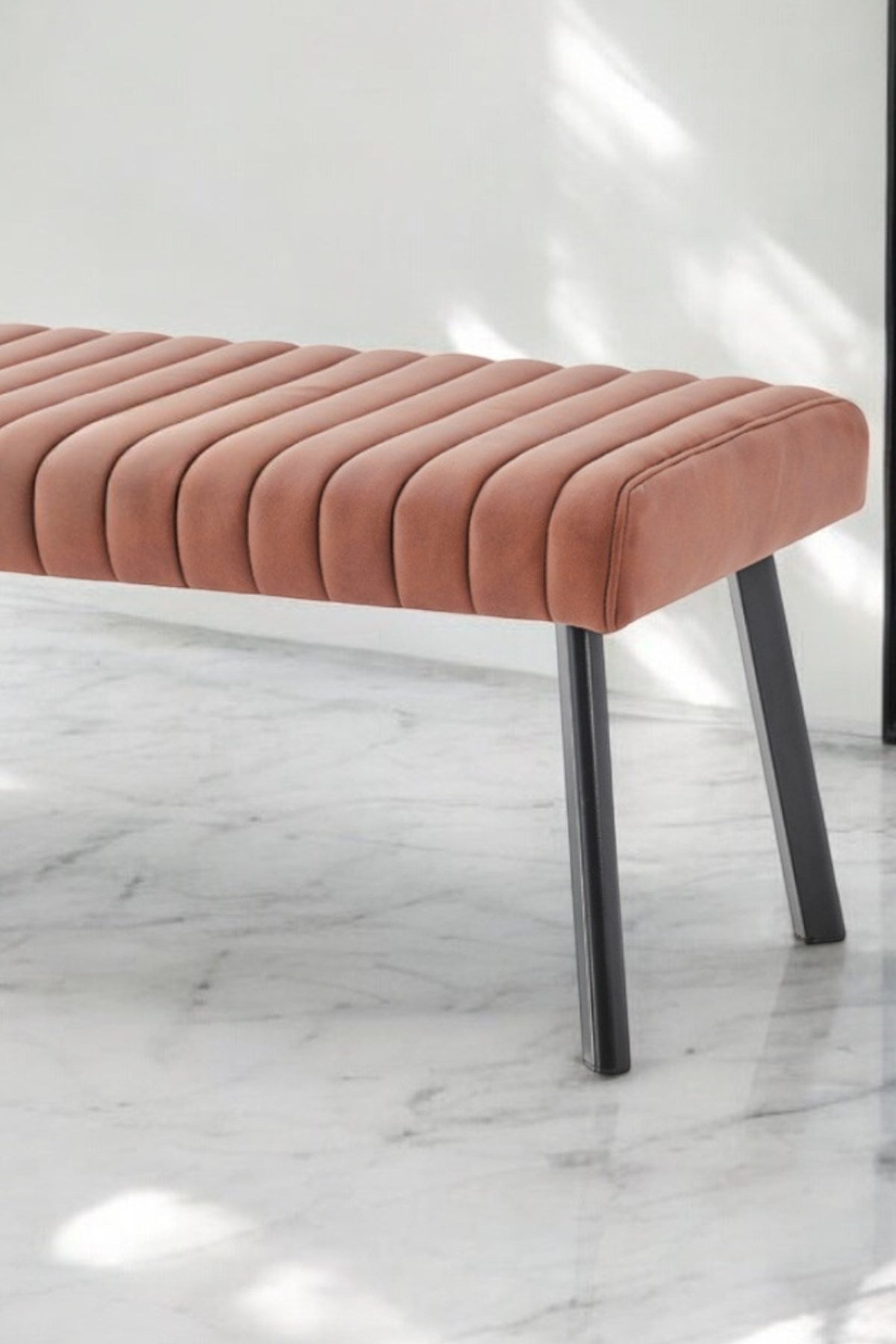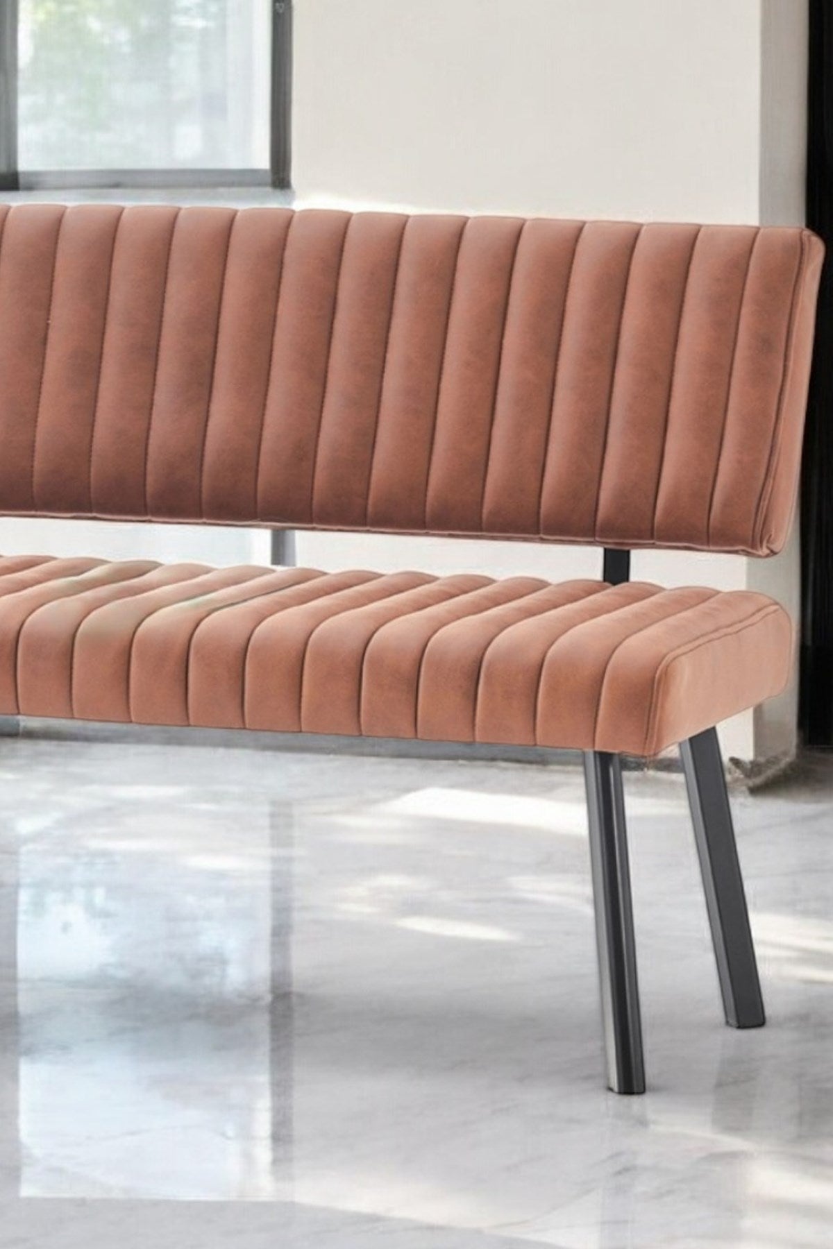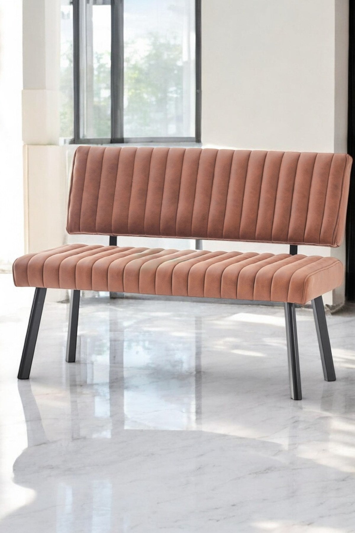 Athas Serisi 1 Adet Kiremit Sırtlı Bank Siyah Metal Ayak 1. Sınıf Kumaş