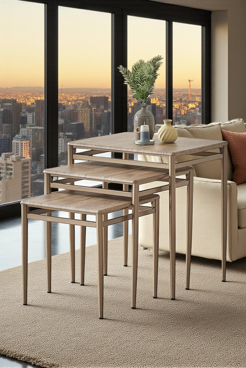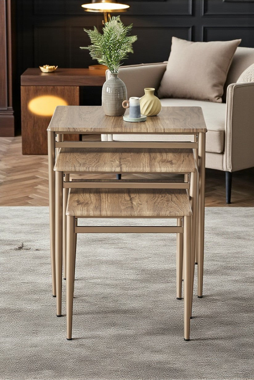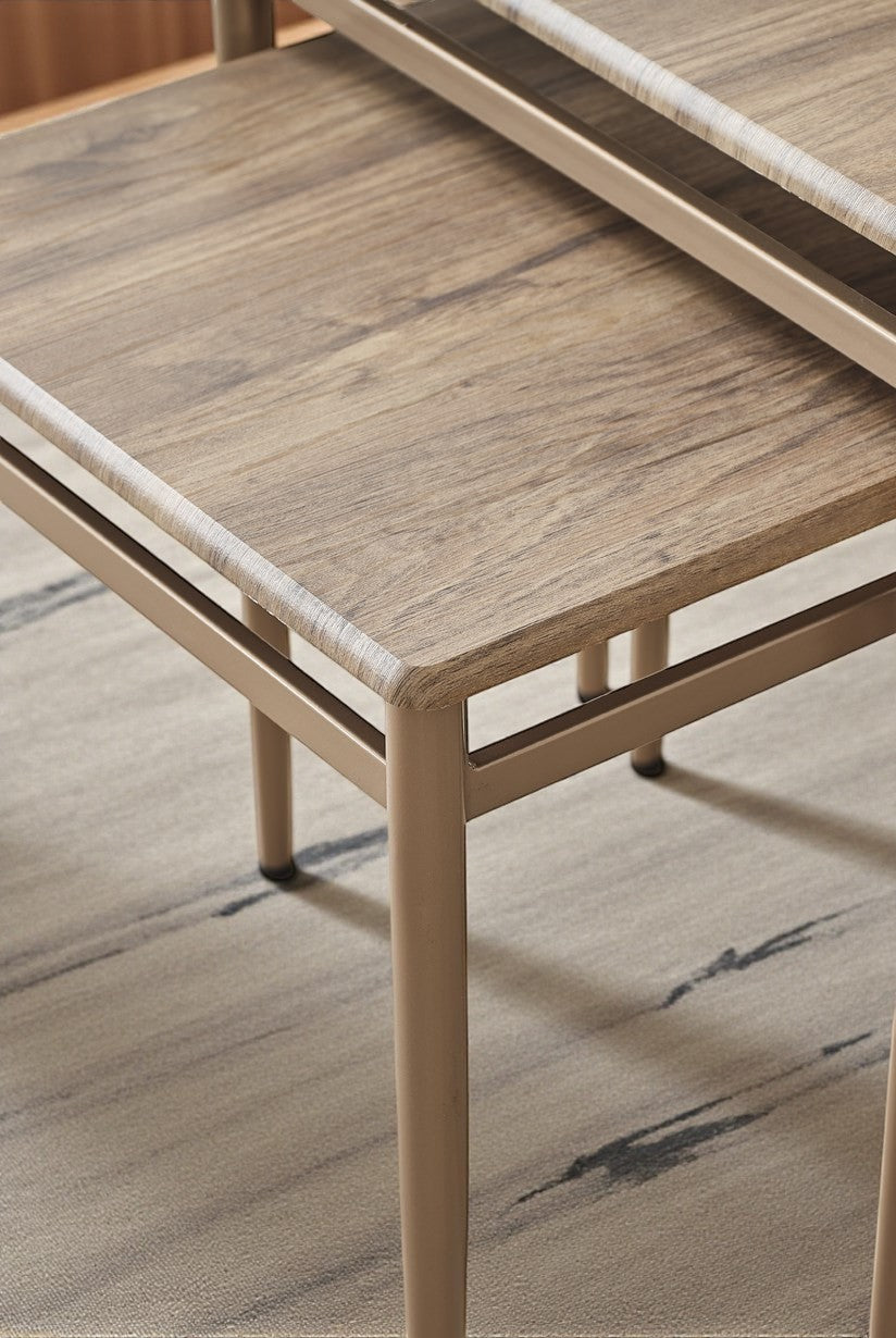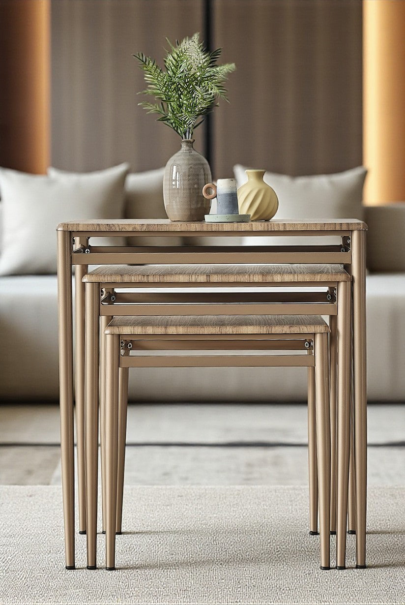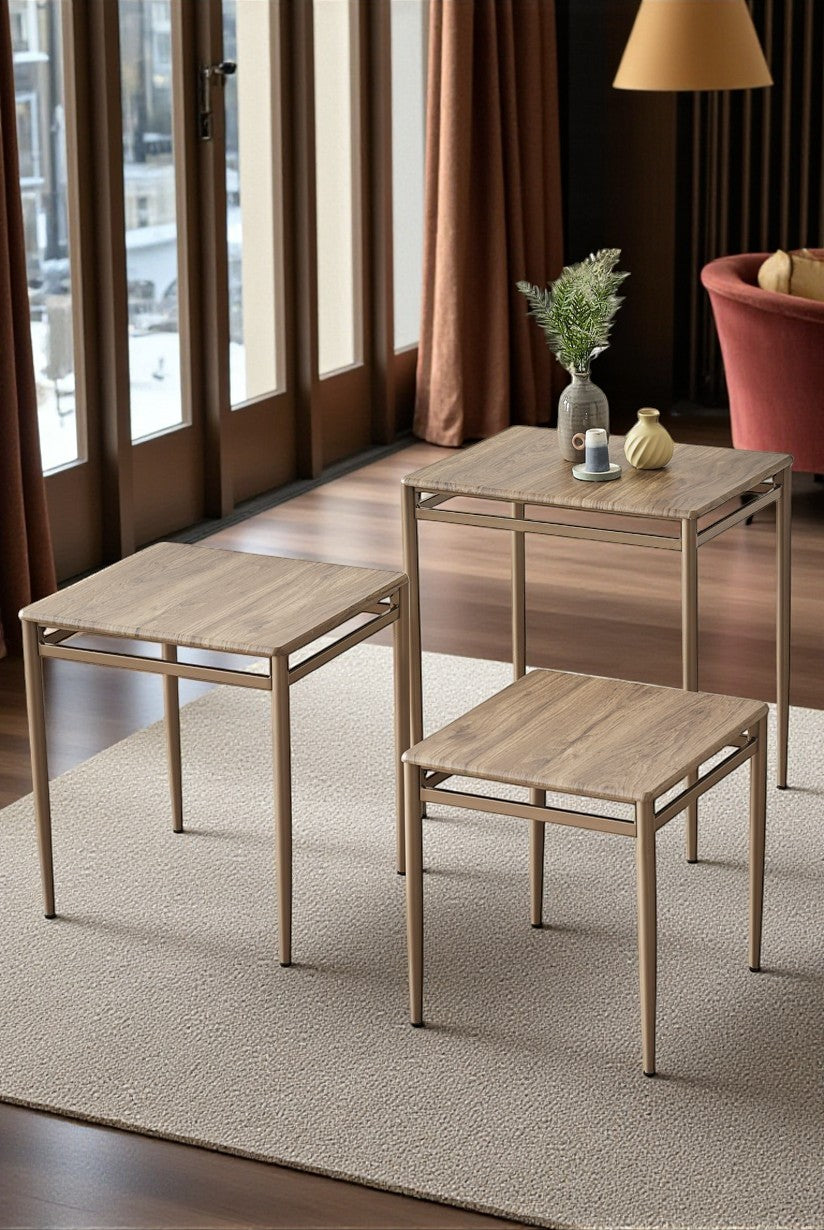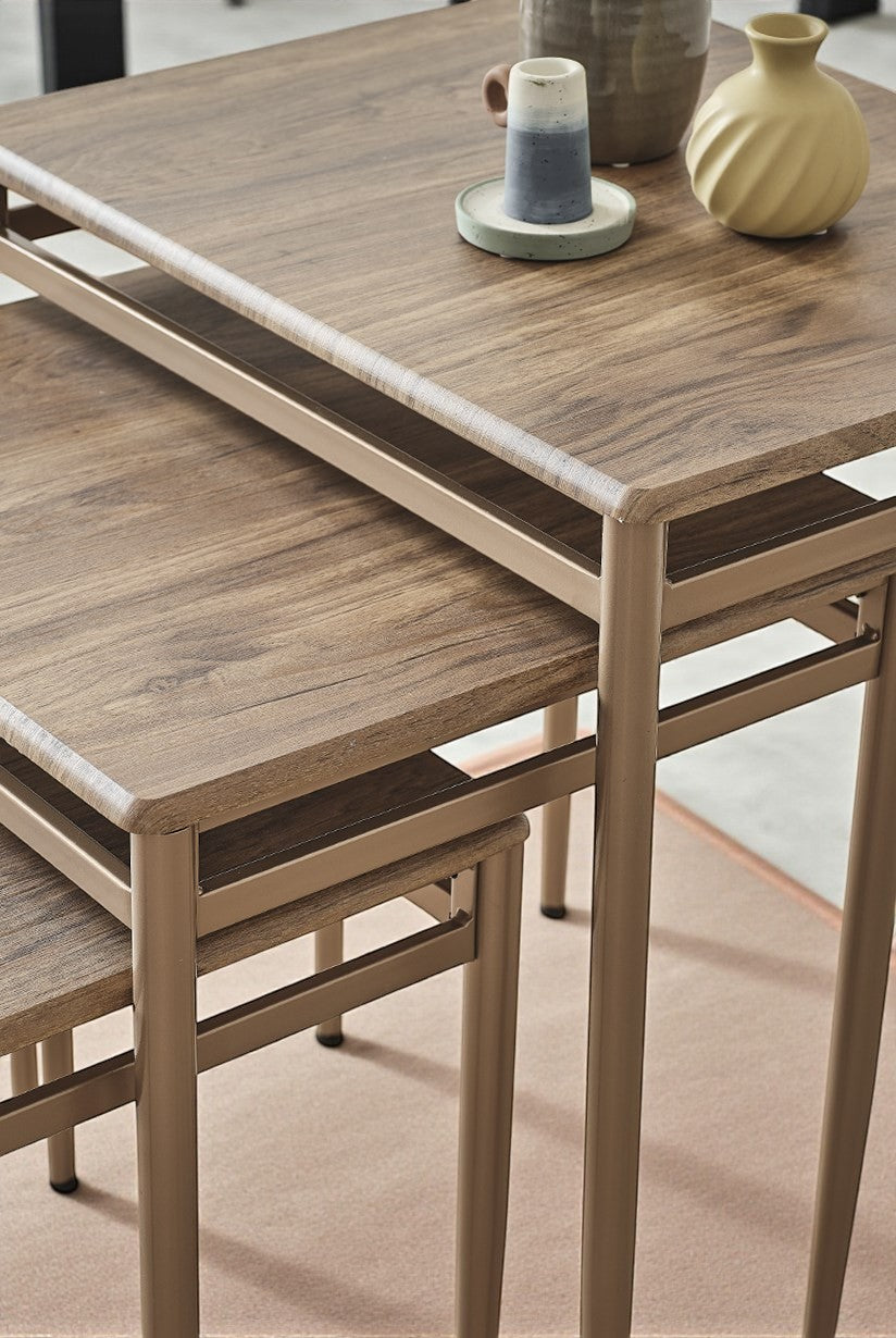 Sehpalar iç içe geçerek yer kaplamaz ve şık bir görünüm sunar