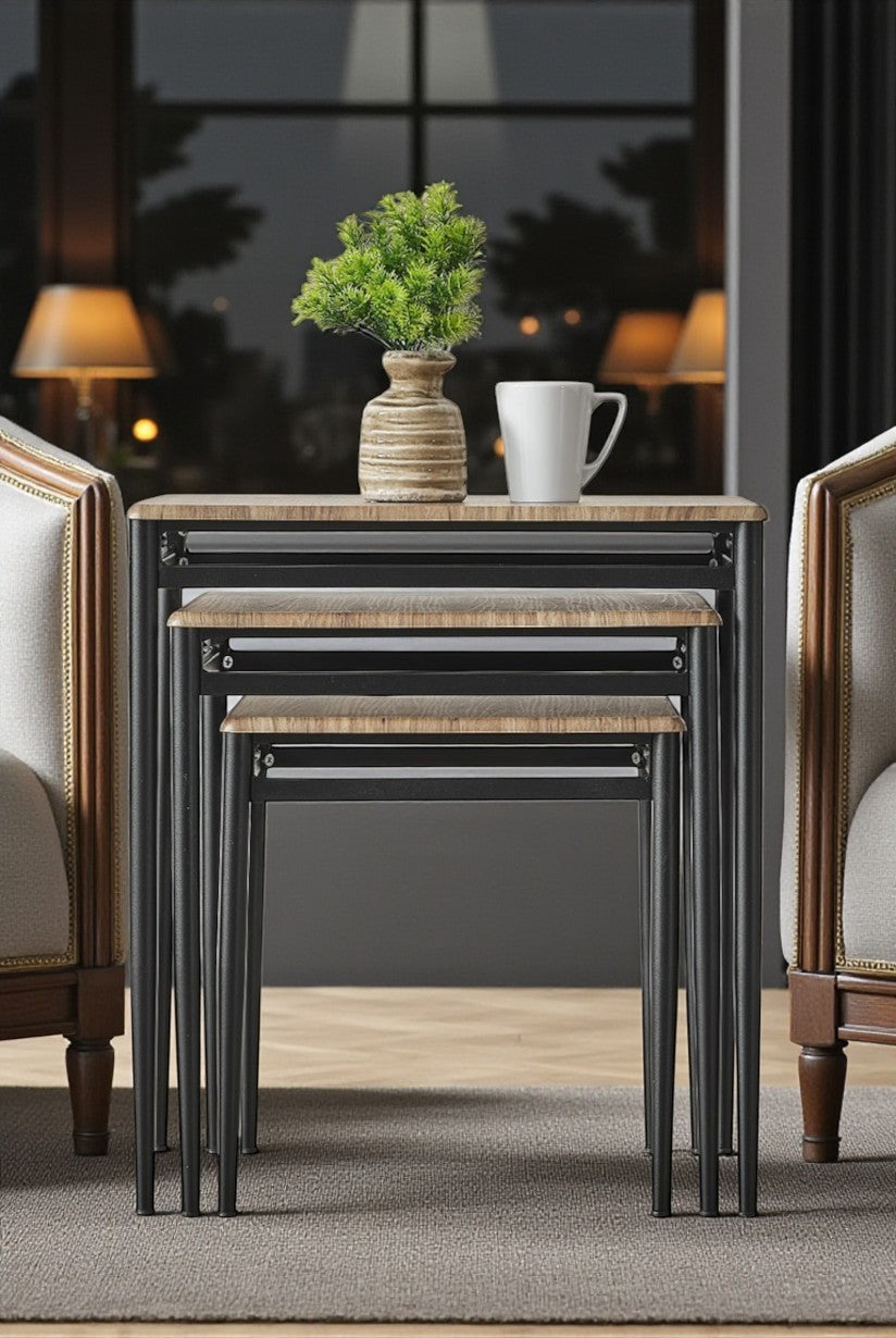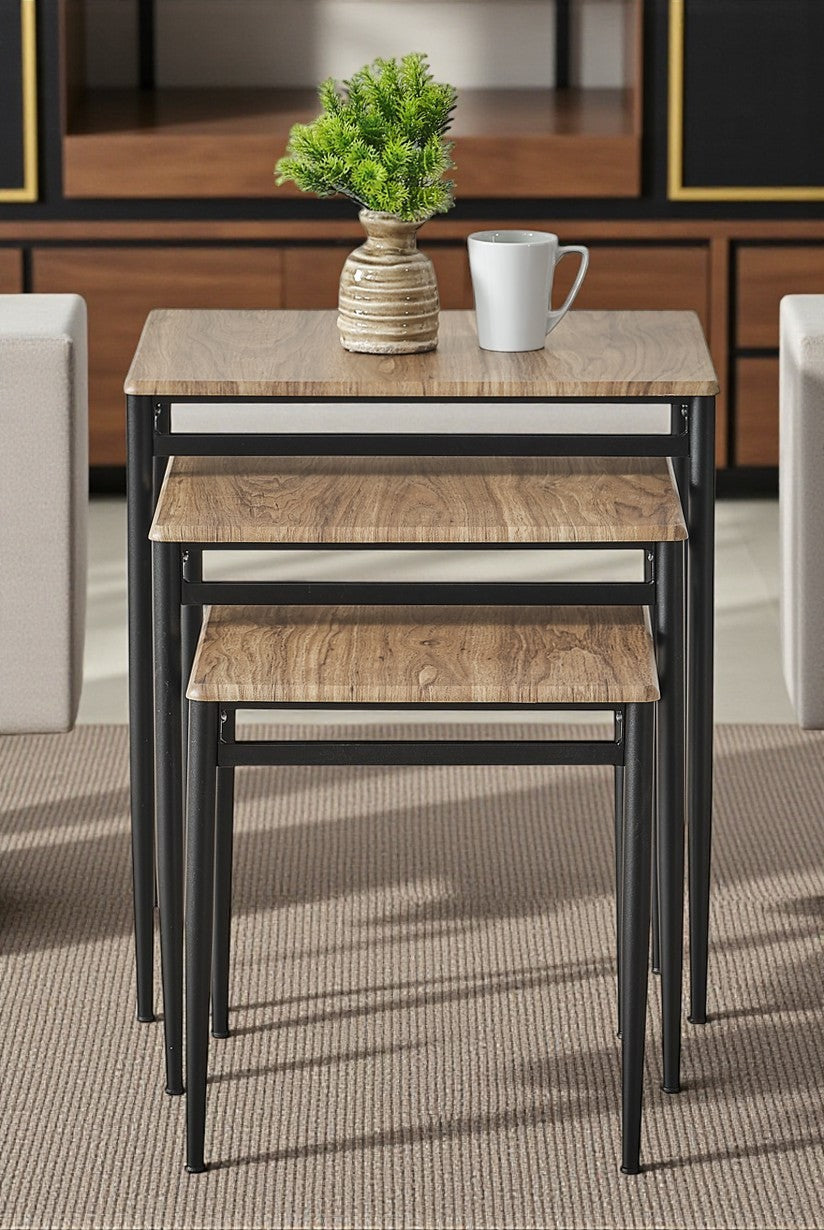 Sehpalar iç içe geçerek yer kaplamaz ve şık bir görünüm sunar
