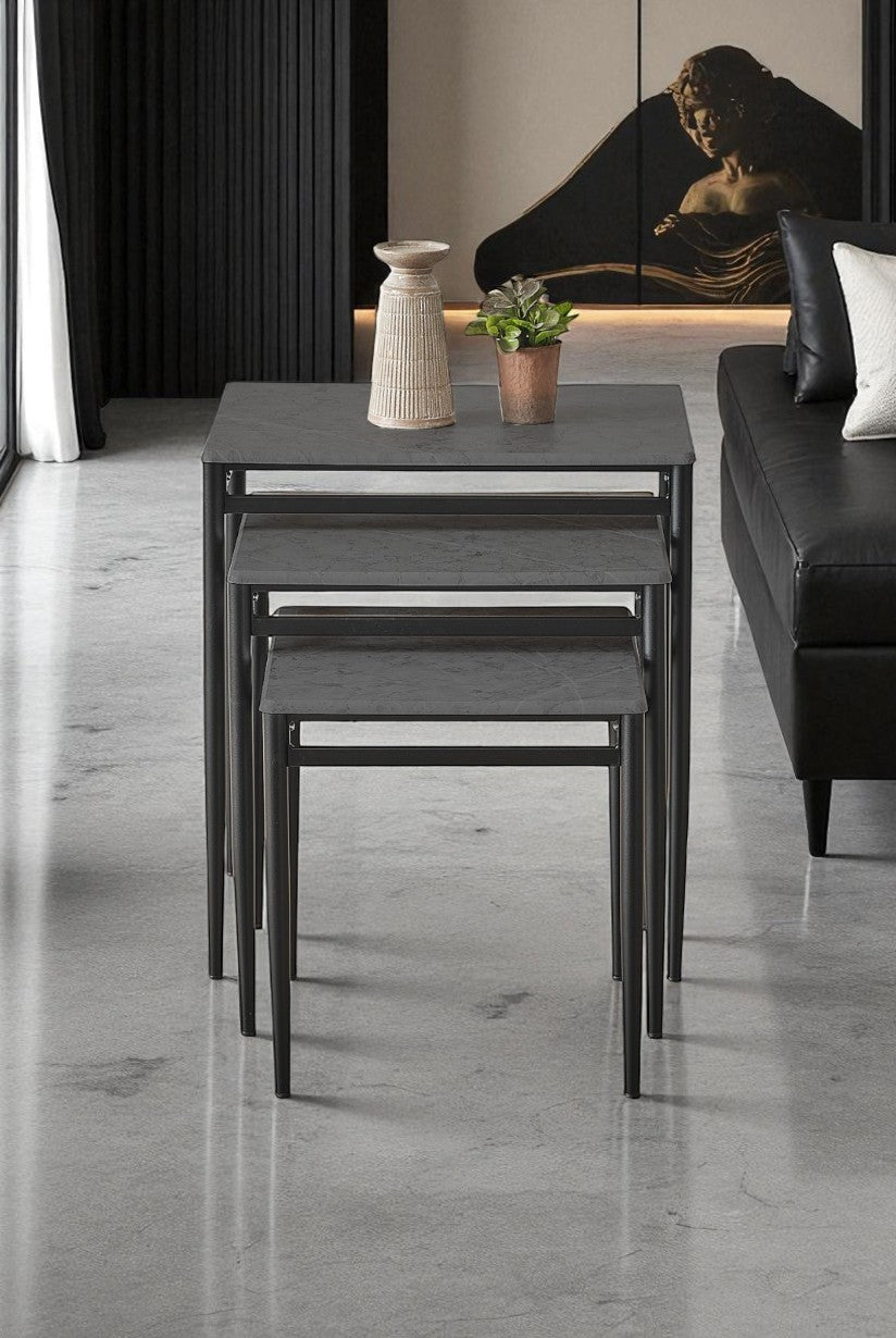 Sehpalar iç içe geçerek yer kaplamaz ve şık bir görünüm sunar