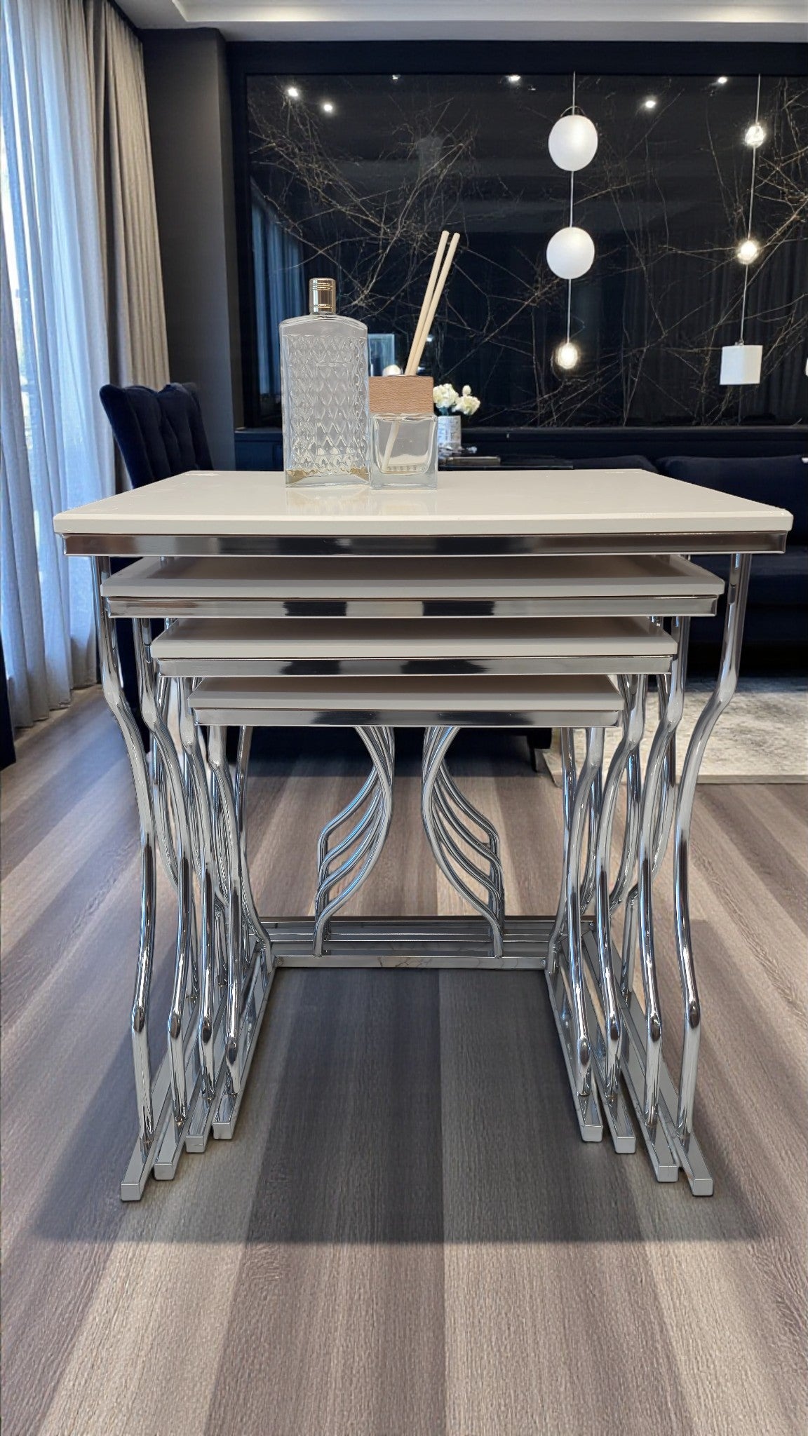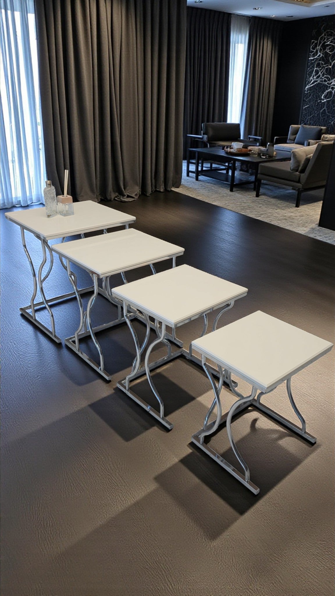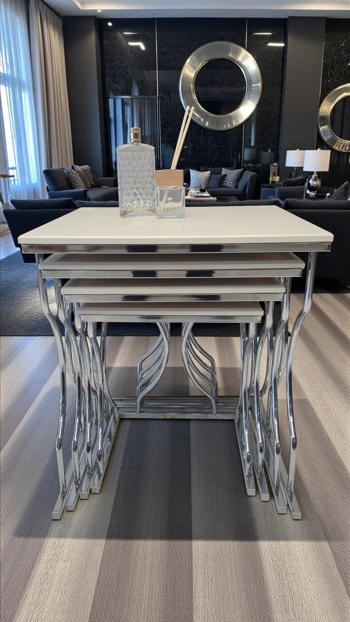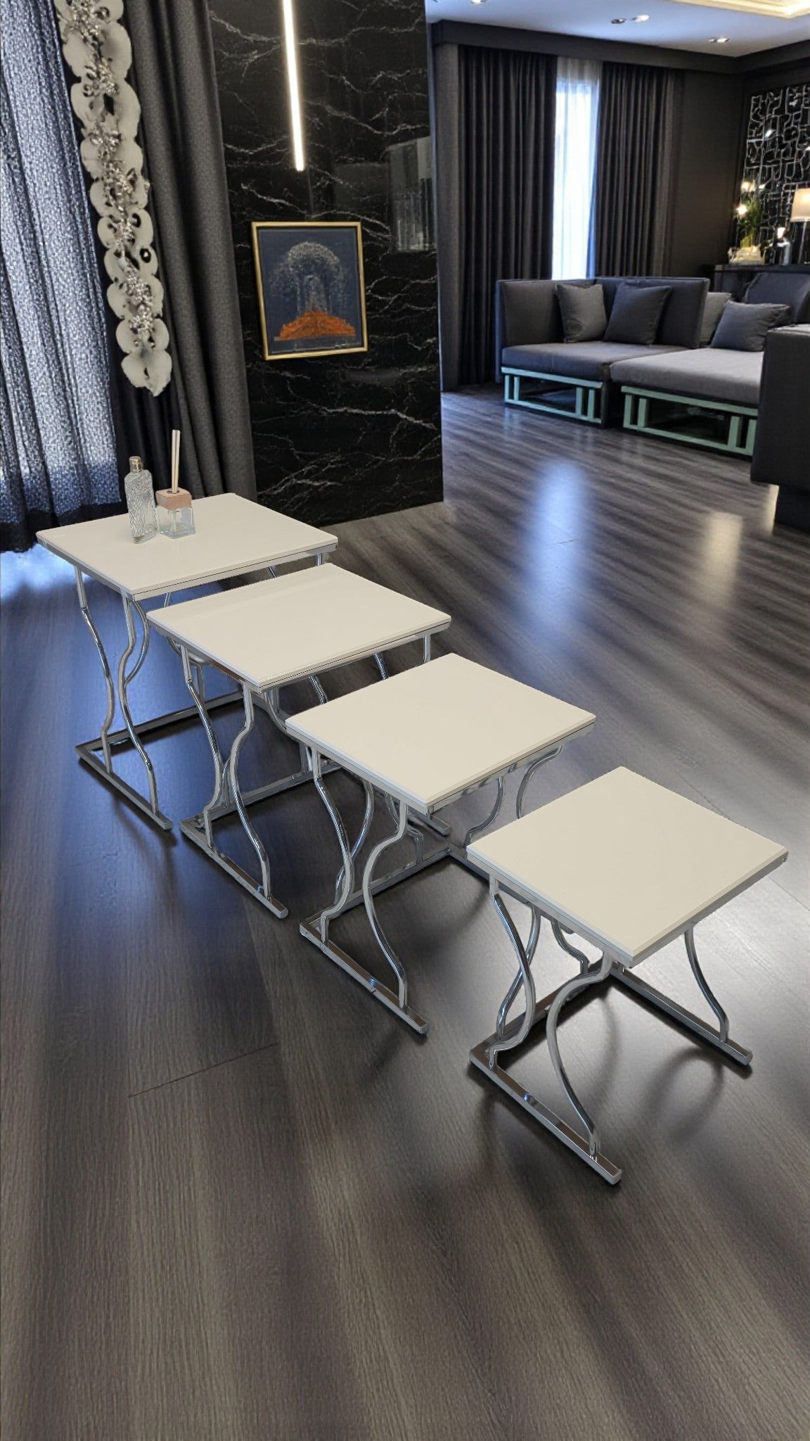 Arden Elite 4’lü Kare Zigon Sehpa Seti zarafet ve lüks tasarımı bir araya getirir ve evinize şıklık katar