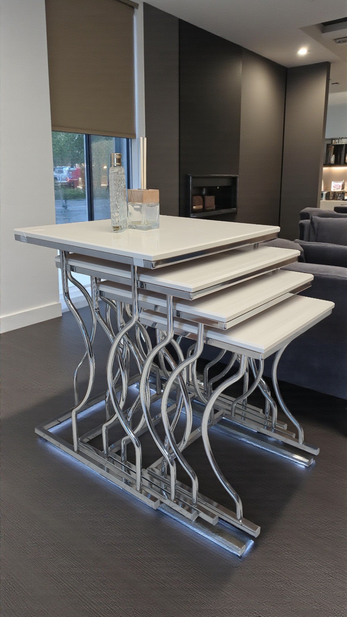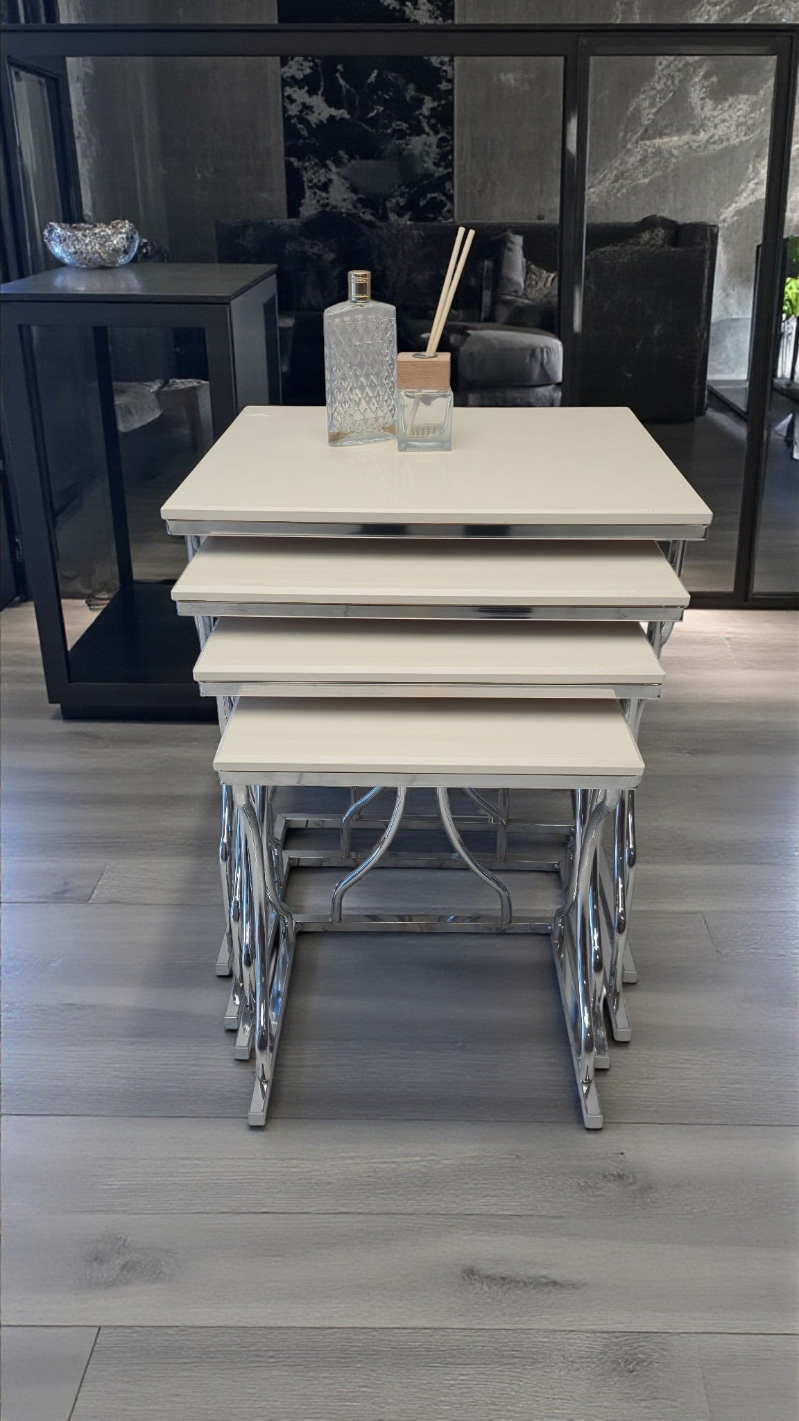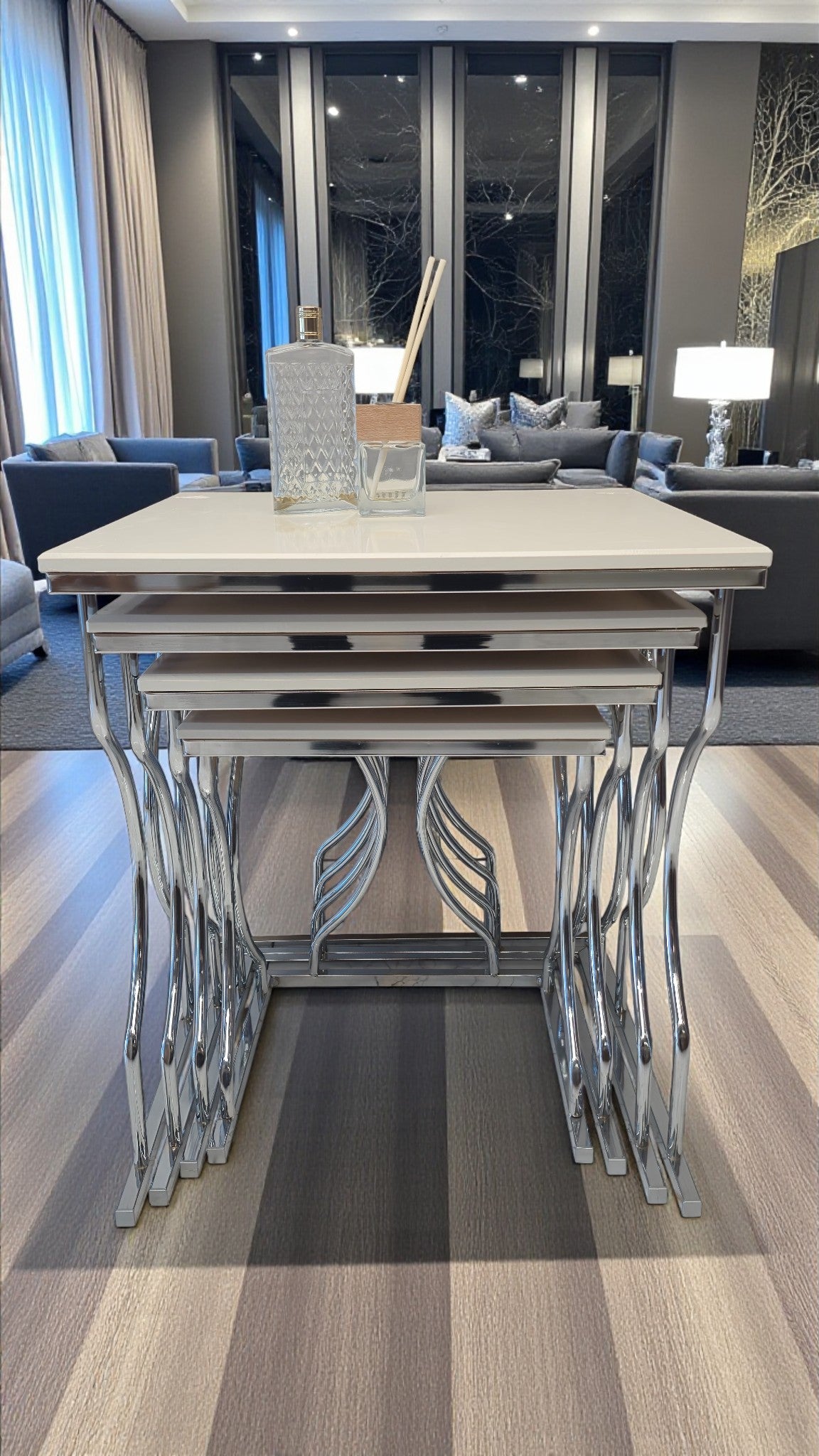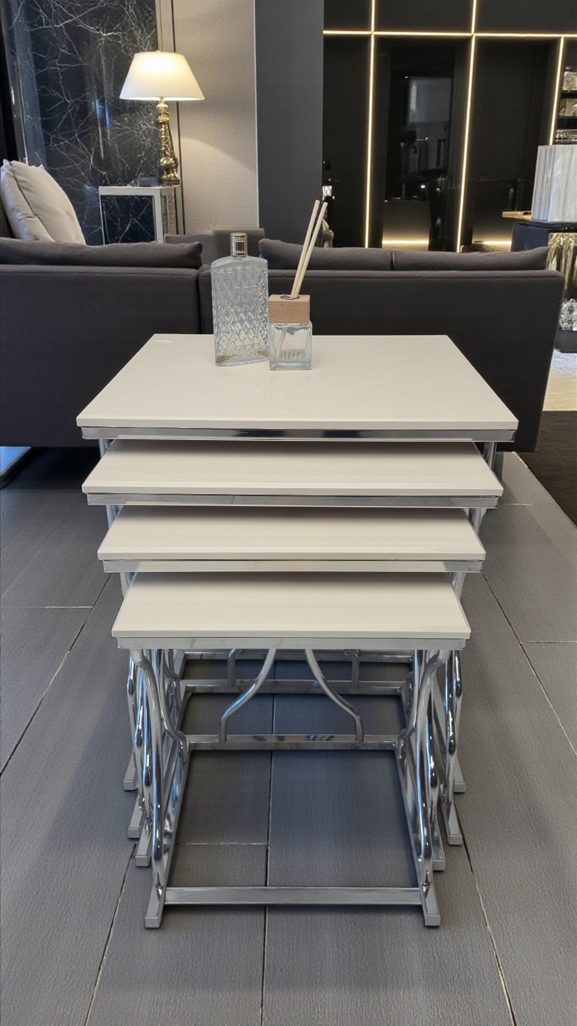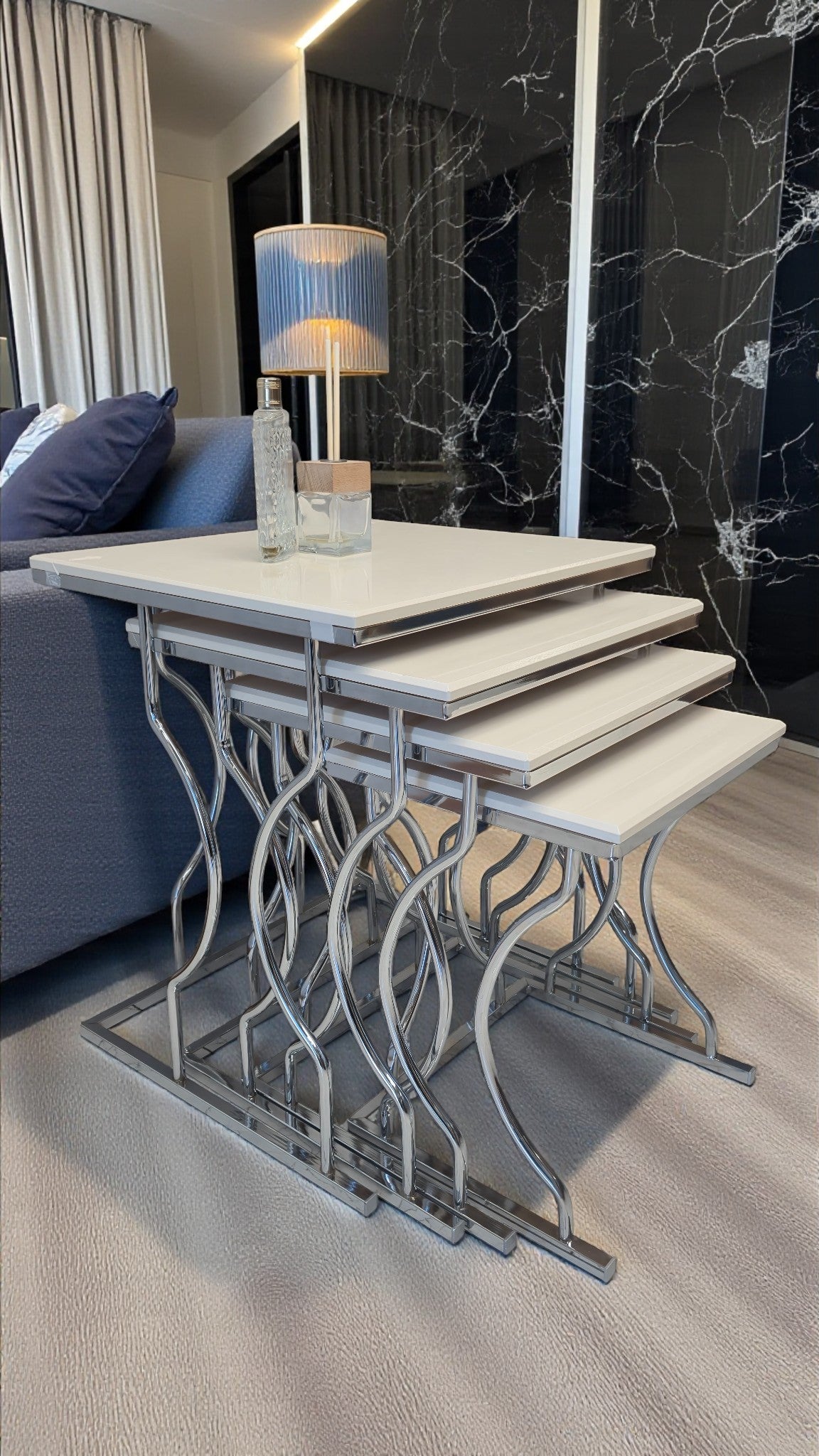 Arden Elite 4’lü Kare Zigon Sehpa Seti zarafet ve lüks tasarımı bir araya getirir ve evinize şıklık katar