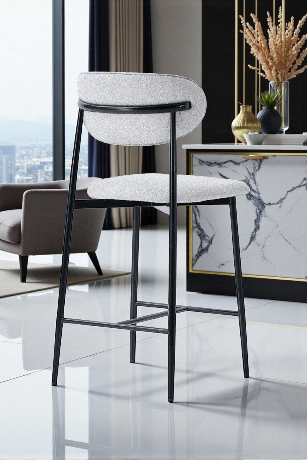 Hanev Serisi Geniş Oturma Alanlı Bar Sandalyesi – Krem / Gold Metal Ayaklı