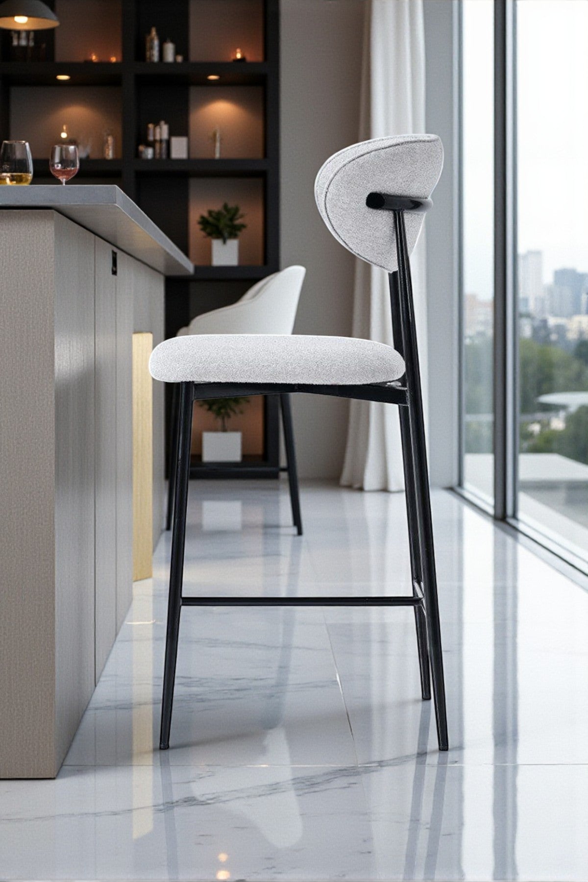 Hanev Serisi Metal Ayaklı BabyFace Kumaşlı 65 cm Bar Sandalyesi