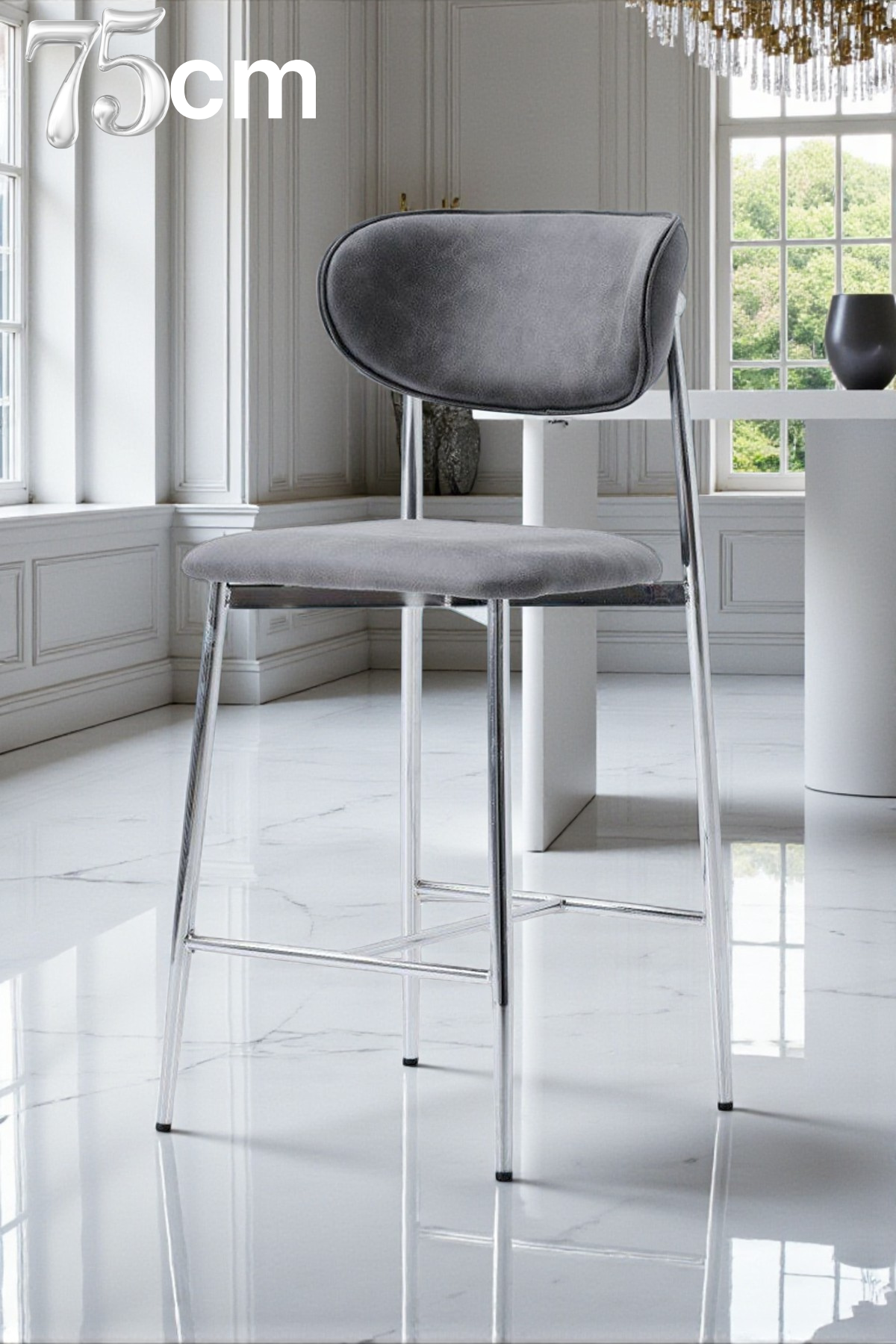 Hanev Serisi Metal Ayaklı BabyFace Kumaşlı 75 cm Bar Sandalyesi