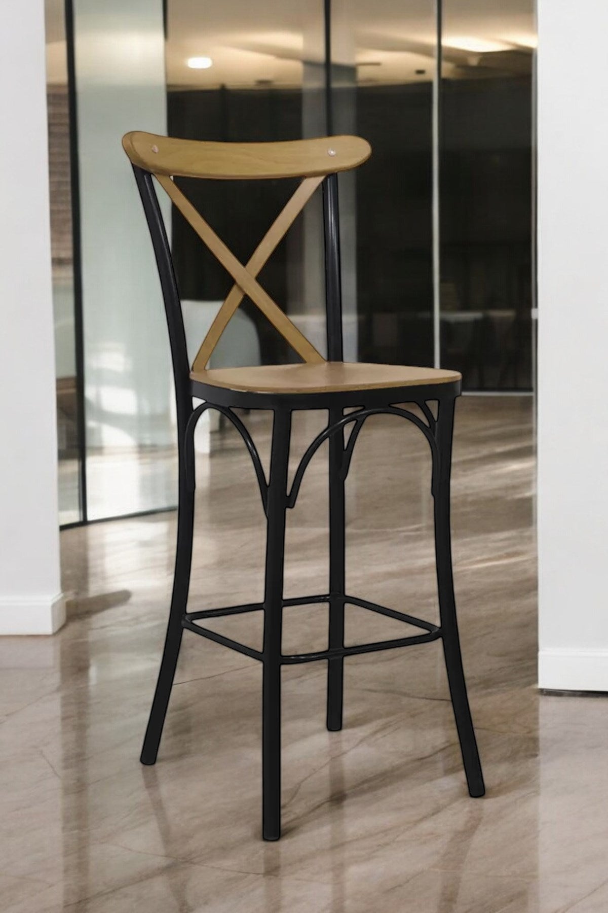 Mizra Serisi 1 Adet 75 Cm Siyah Ada Mutfak Bar Sandalyesi Metal Ayak