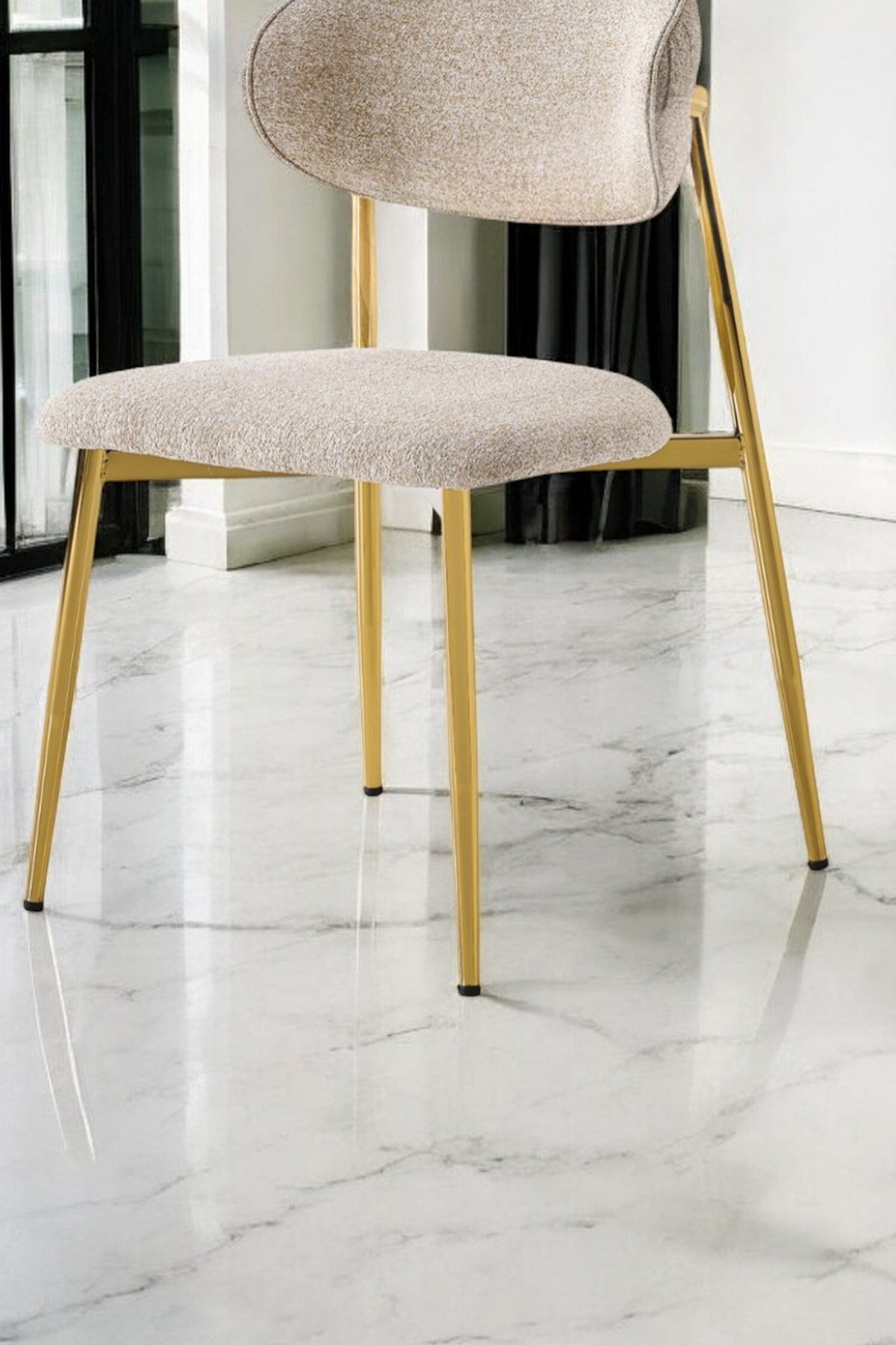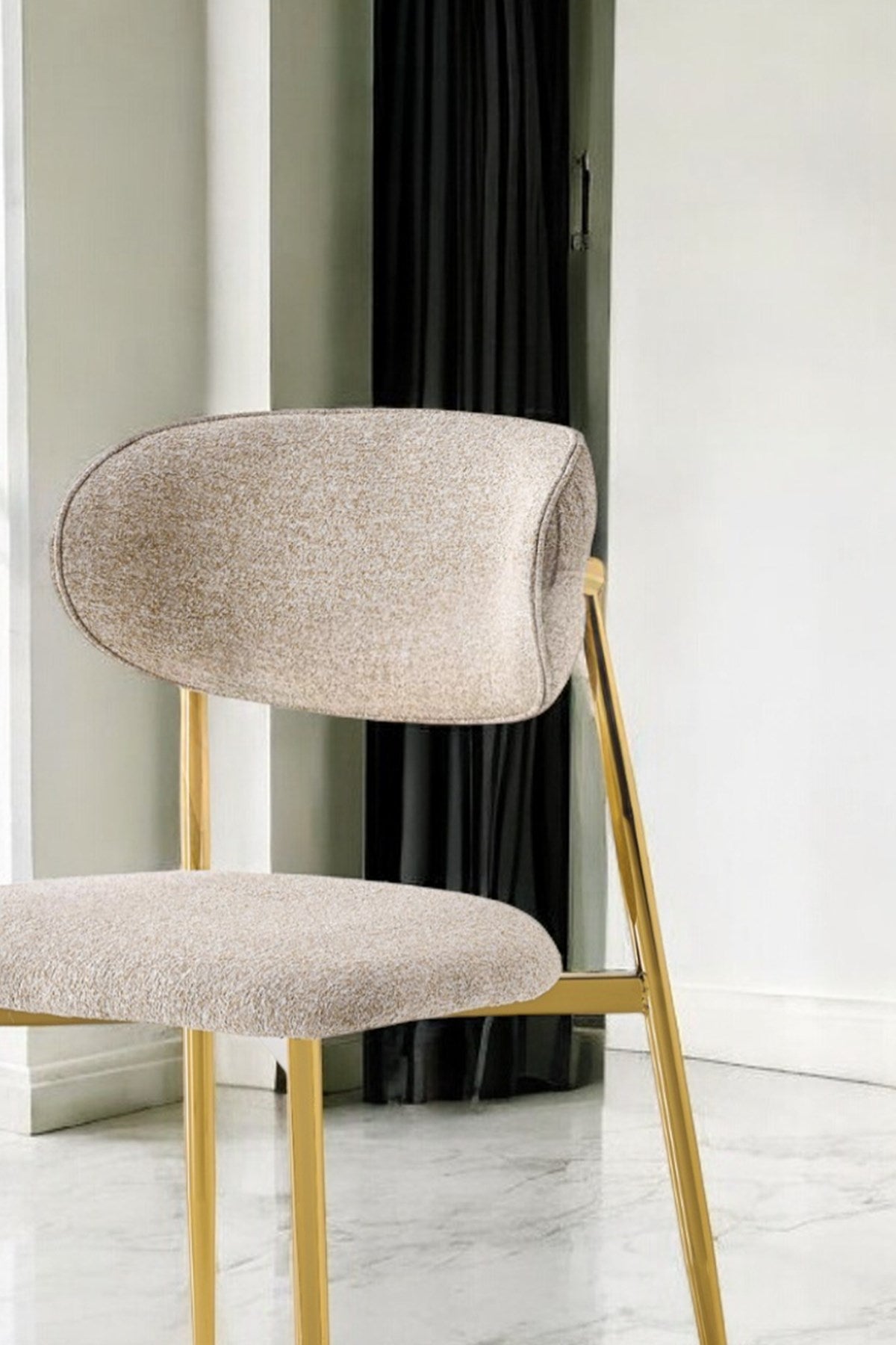 Modza Serisi 1 Adet Krem Mutfak Sandalyesi Gold Kaplama Metal Ayak 1. Sınıf Kumaş