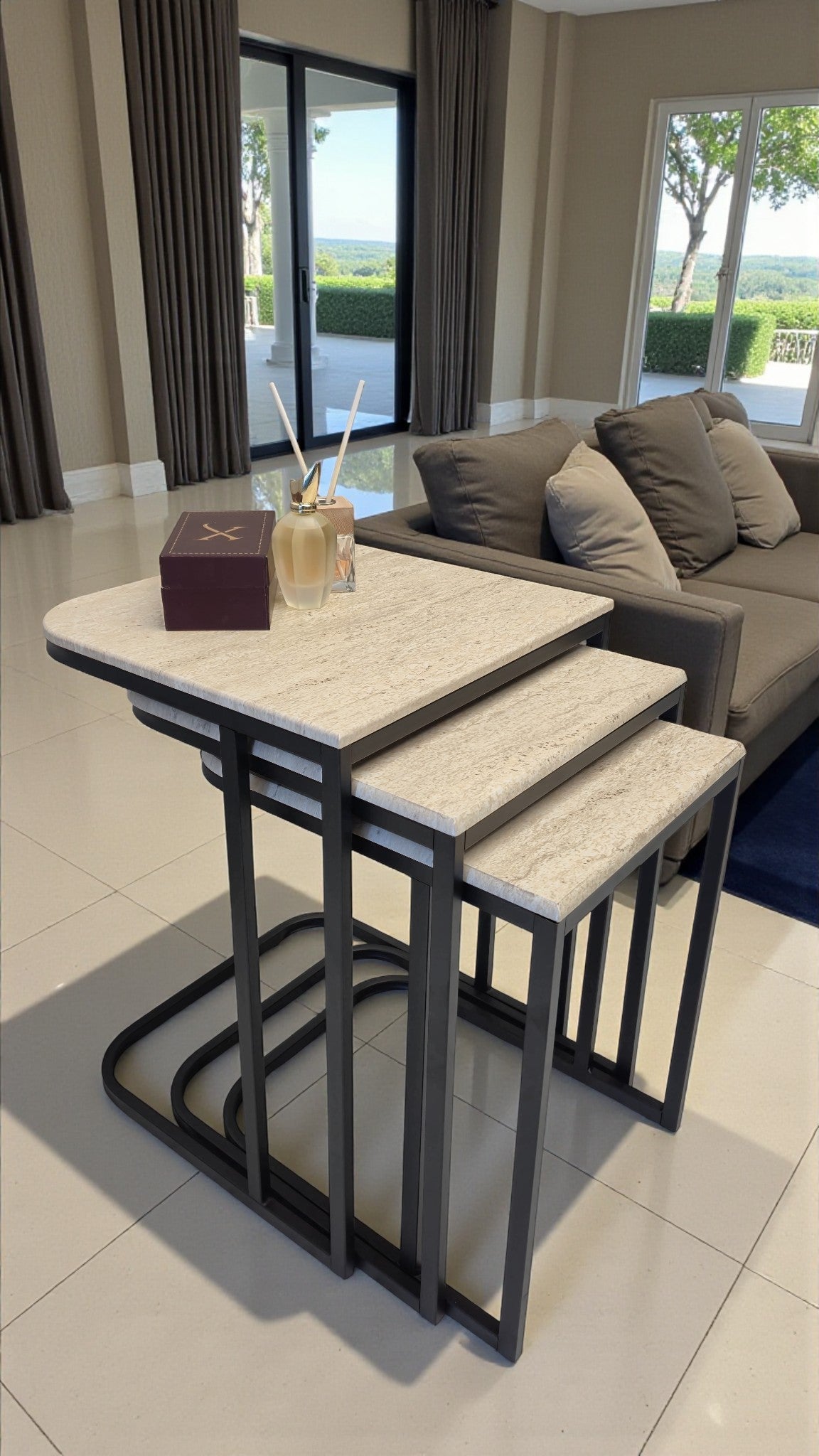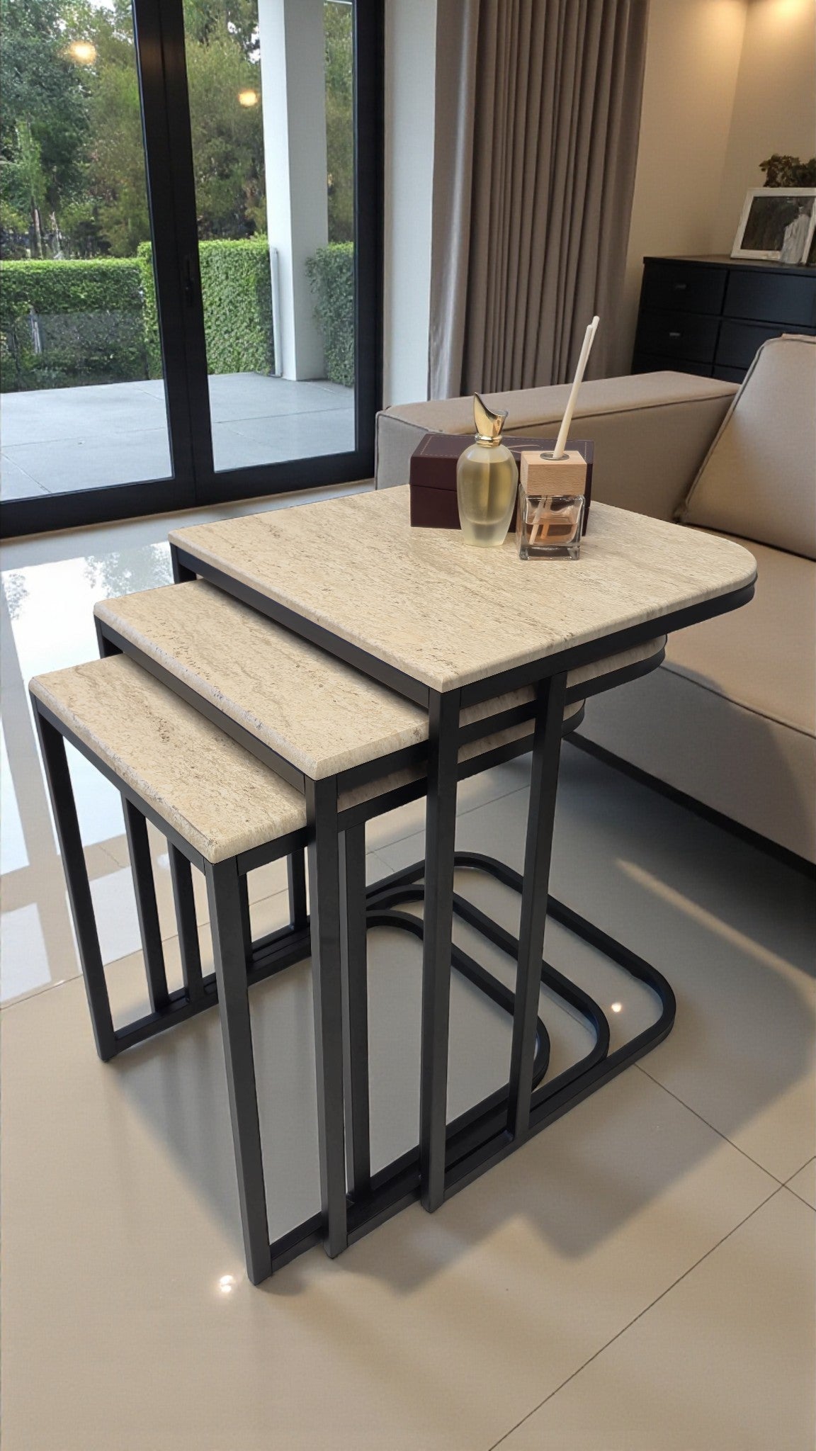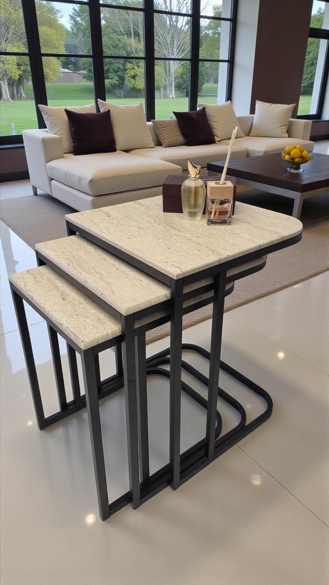 Ev dekorasyonunuza şıklık, zarafet ve konfor katacak bu modern tasarımlı 3’lü yan sehpa seti farklı ebatlarıyla her ortama uyum sağlar